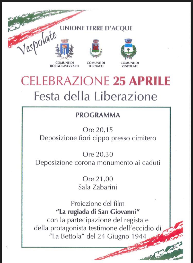 25 aprile festa della liberazione - celebrazione unionale a Vespolate