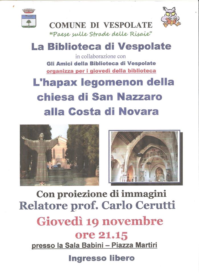 L'hapax legomenon della Chiesa di San Nazzaro alla Costa di Novara con proiezioni di immagini - relatore Prof. Carlo Cerutti.