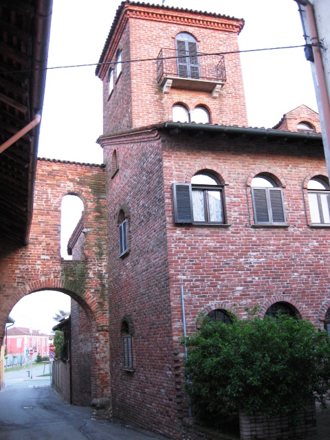 Inoltre, in corrispondenza del livello inferiore, é presente un arco acuto realizzato in muratura laterizia piena. Evidente il degrado delle superfici murarie lasciate a vista, con presenza di infestazione vegetazionale in corrispondeza del fronte con esposizione sfavorevole.
