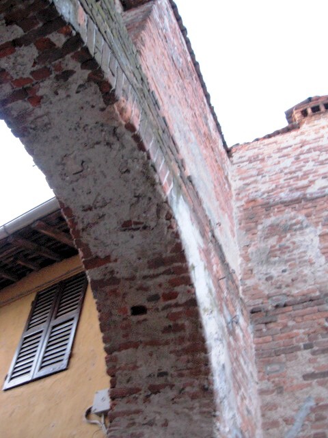 In relazione al bene in esame, un elemento fortemente caratterizzante sotto il profilo tipologico é costituito dalla persistenza di quello che verosimilmente corrispondeva ad un tratto della cinta muraria, di cui permarrebbero un'arcata di ingresso e - forse - l'elemento, fortemente rimaneggiato, della torre.