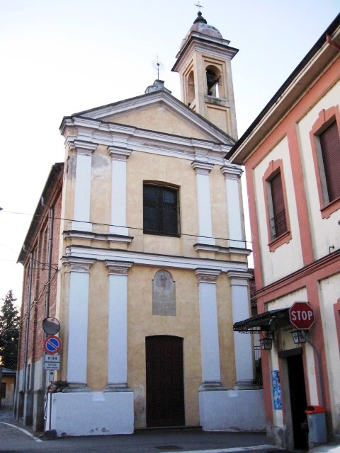 Significativa la permanenza in facciata, al di sopra dell'ingresso, di un affresco segnato da avanzato degrado e bisognoso di restauro. Presente un campanile con impianto planimetrico interno all'aula. Il fronte, oggetto di interventi non remoti, presenta finitura ad intonaco, già segnata da fenomeni di umidità ed efflorescenze legate all'umidità.